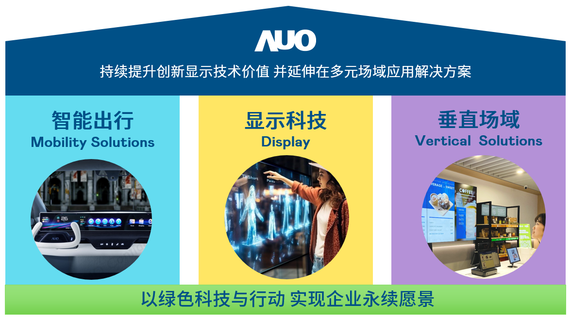 我们持续推动「双轴转型」,在精进显示技术附加价值(Go Premium),与深化垂直市场应用(Go Vertical)的策略下,对应赢多多的优势竞争力与趋势,我们奠定显示科技、智慧移动、垂直场域三大永续营运支柱,在显示技术领域的根基之上,延伸布局多元场域应用解决方案。将先进显示科技助力智慧移动及垂直场域发展,并以绿色科技与行动为实践,在转型之路上贯彻永续经营之愿景。